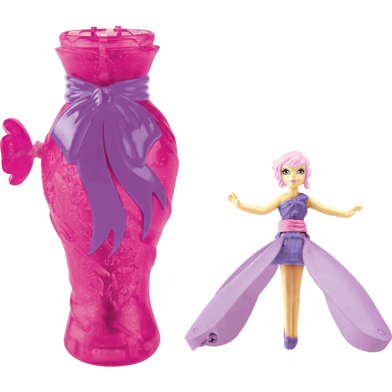 Unlock the magical dancing of Flutterbye Dance and Fly Fairies. Place Posey on her perfume bottle and pull the string to see her fly. When she lands, Posey will dance across any smooth surface with style and ease. It’s a magical experience that brings the fantasy of fairies to life. Grace the skies and unveil the magic of Posey Fairy with Flutterbye Dance and Fly Fairies! This mini enchanting fairy, flies and dances. Simply place the fairy on the perfume bottle launcher, pull the cord then watch her fly!! When she lands watch her dance.
